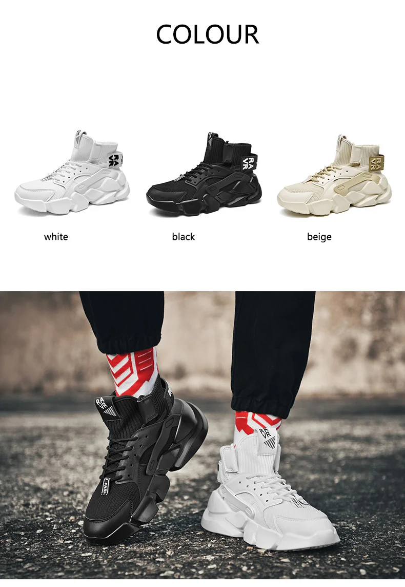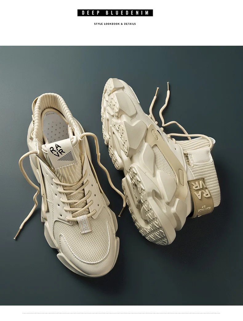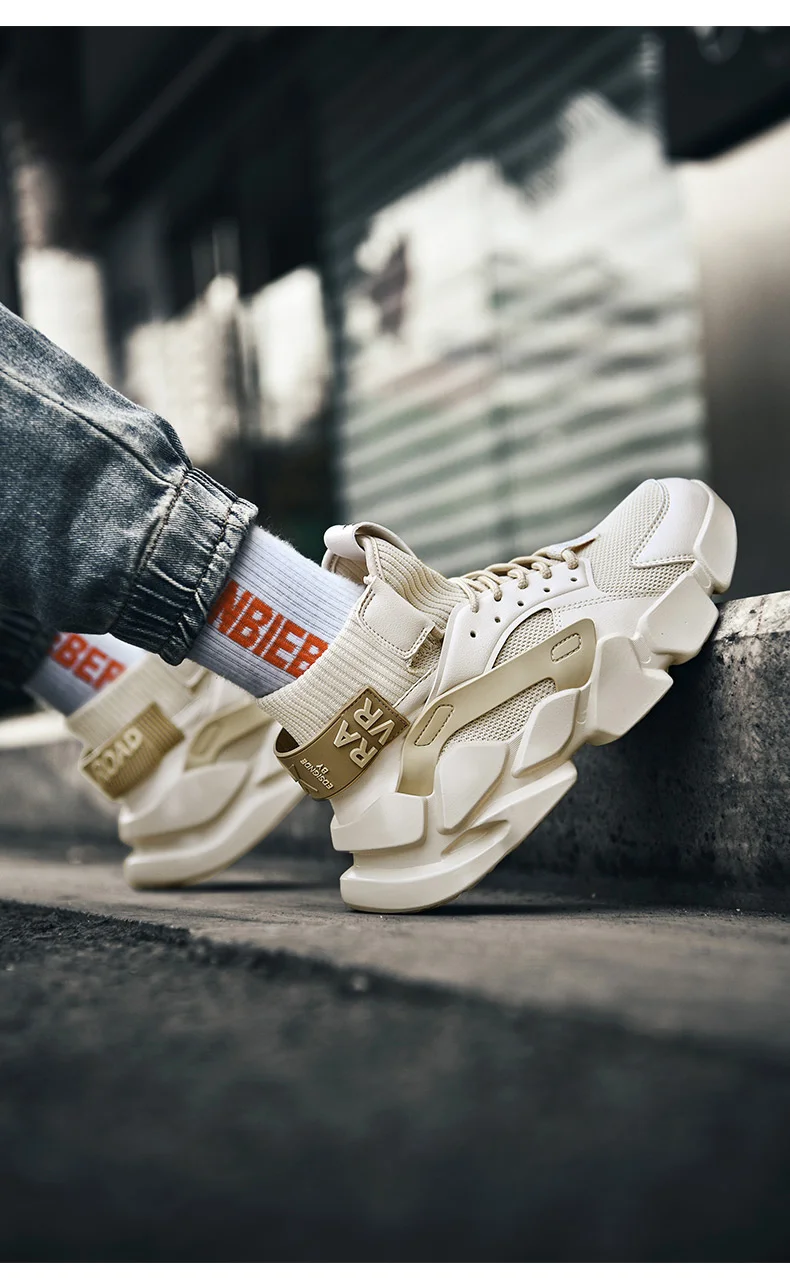 Бежевые кроссовки с высоким берцем на толстой подошве, модные мужские кроссовки с увеличенным верхом, дышащая повседневная обувь, мужская обувь больших размеров