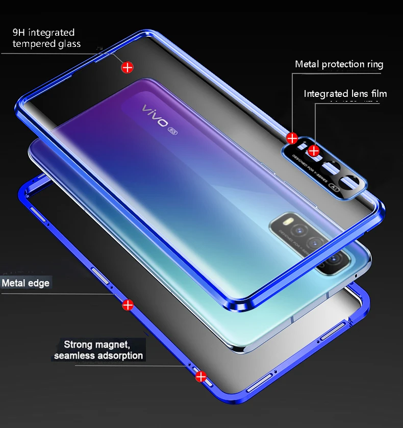 Магнитный стеклянный ЧЕХОЛ ДЛЯ VIVO V20 Y72 Y50 Y30 Y20i NEX 3 3S X60 X50 X30 Pro, металлический защитный двойной закаленный чехол для объектива камеры