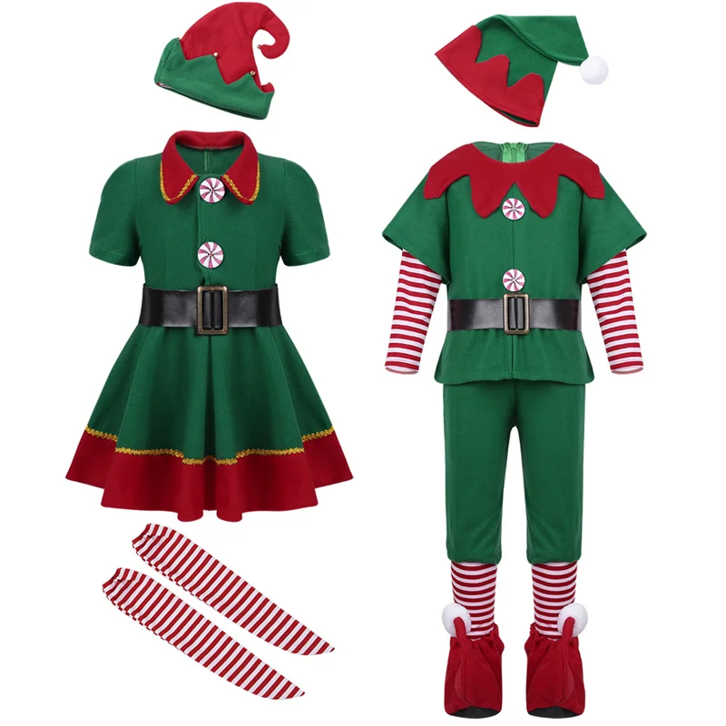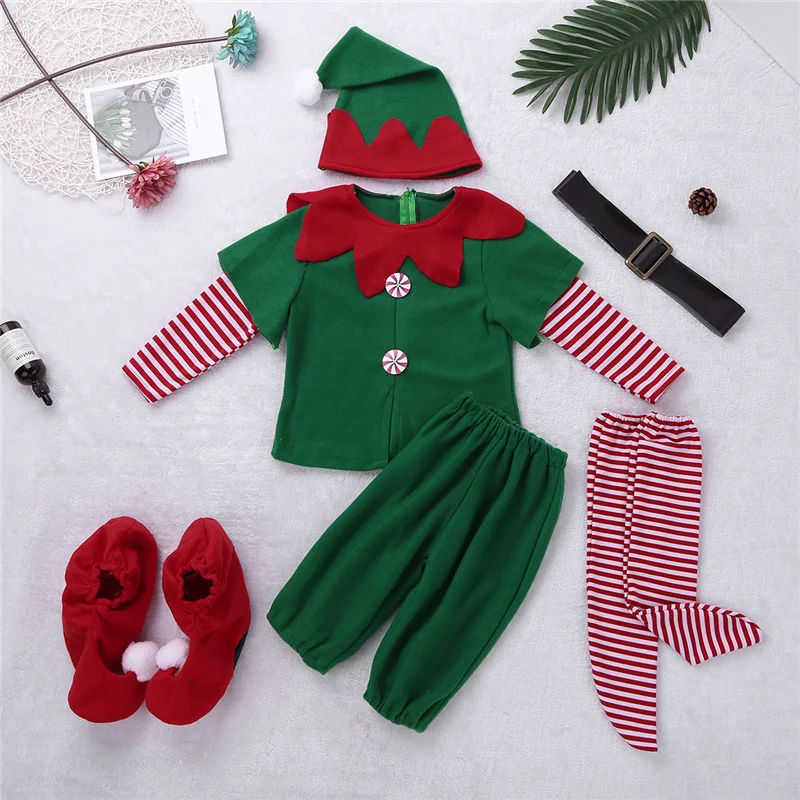 2021 зеленый эльф, Детский Теплый Рождественский костюм, одежда Санта-Клаус для девочек и мальчиков, маскарадный костюм для новогоднего ребенка, комплект одежды для вечеринки