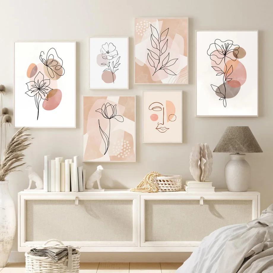 Абстрактные Фигурки лица, линии тела, формы, настенное искусство, х...