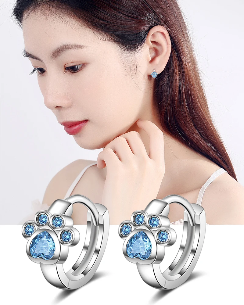Милые Милая кошачья лапа серьги-кольца серебряного цвета с голубым ...