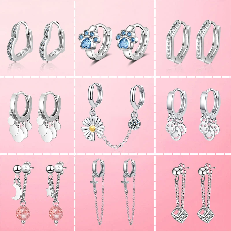 Номер моделиDaisy Heart Earring Star & Moon Two Ear Hole Pierce Hoop Earrings