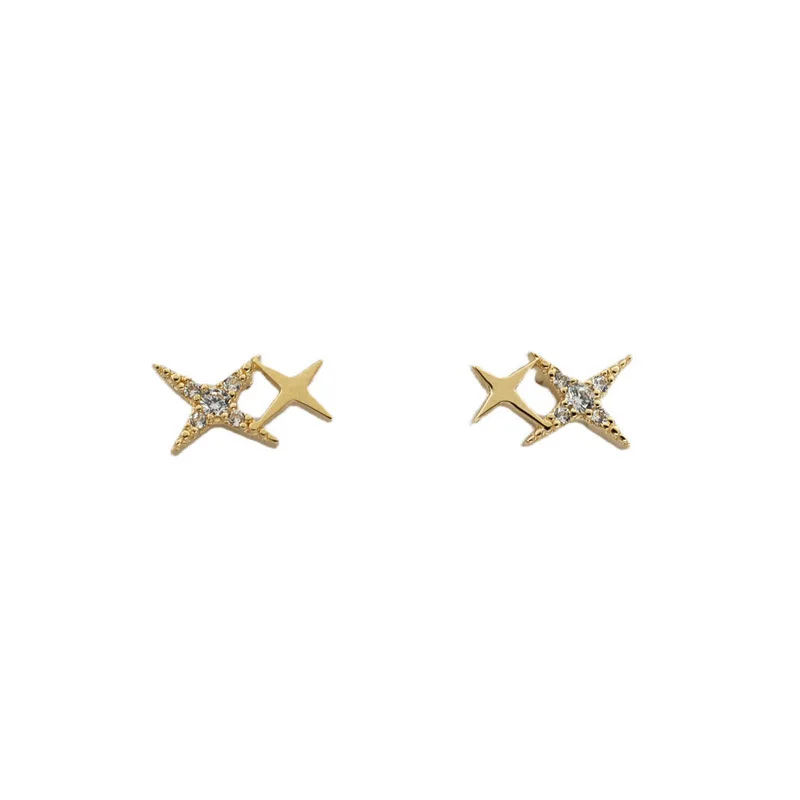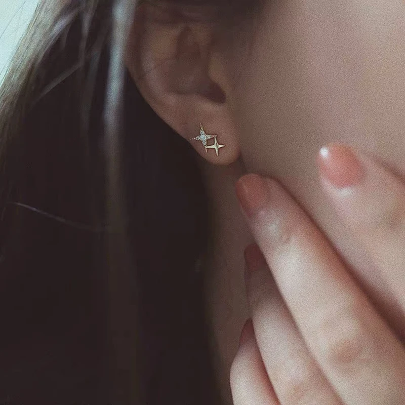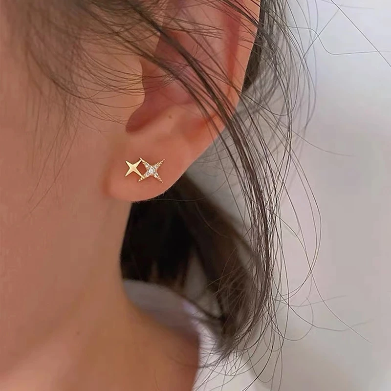 Женские серьги-гвоздики VENTFILLE из стерлингового серебра 925 пробы с четырёхконечной звездой в Корейском стиле, роскошные ювелирные украшения из золота 14 карат