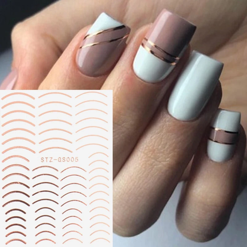 3D линии, наклейки для ногтей сделай сам, розовые, золотые металлические полосы, наклейки, изогнутые Слайдеры для ногтей, самоклеящиеся полосы, украшения для дизайна ногтей