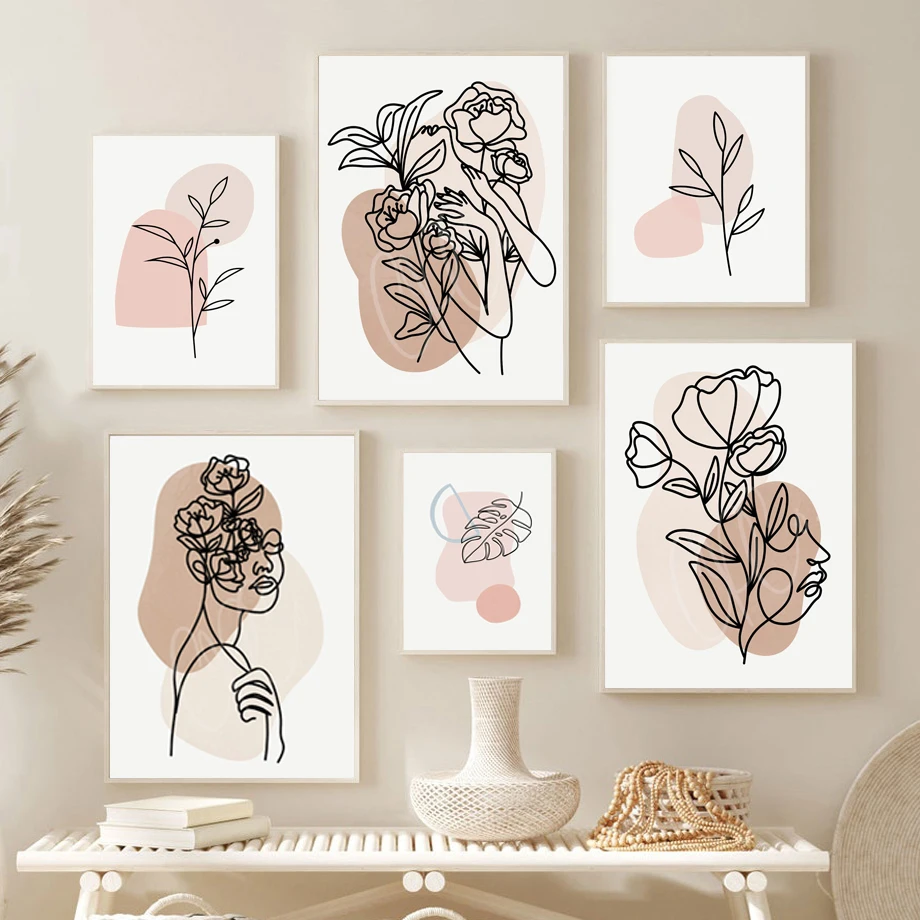 Абстрактные женские линии растений цветной блок Скандинавия настенная живопись холст постеры и принты скандинавский стиль Декор для гостиной