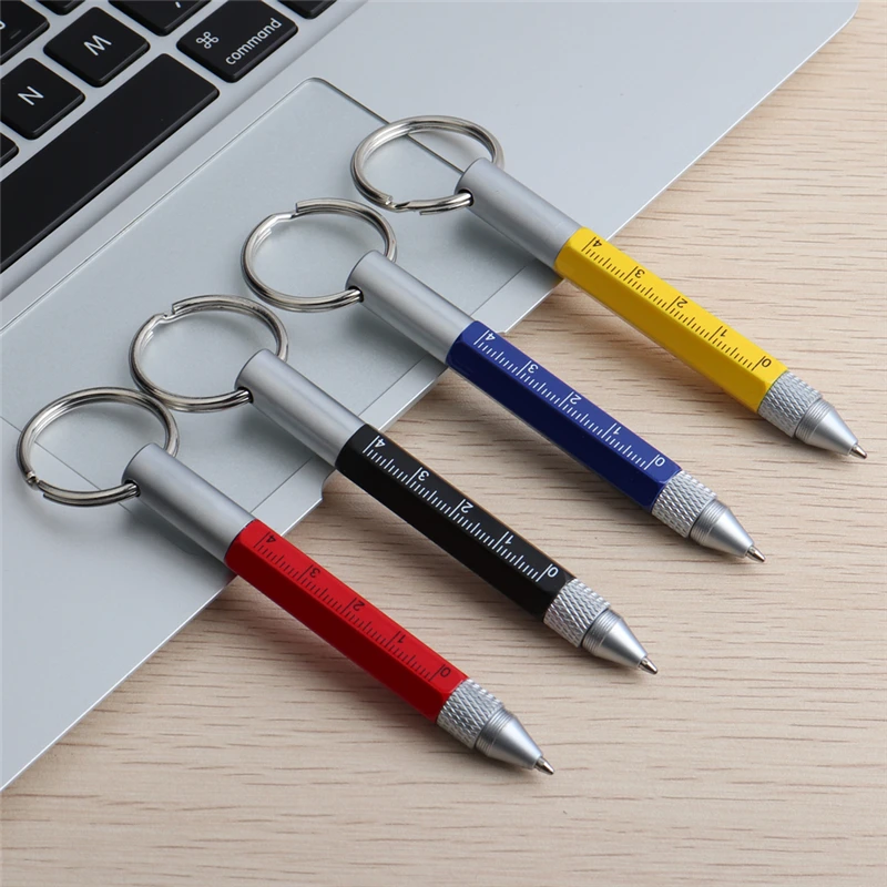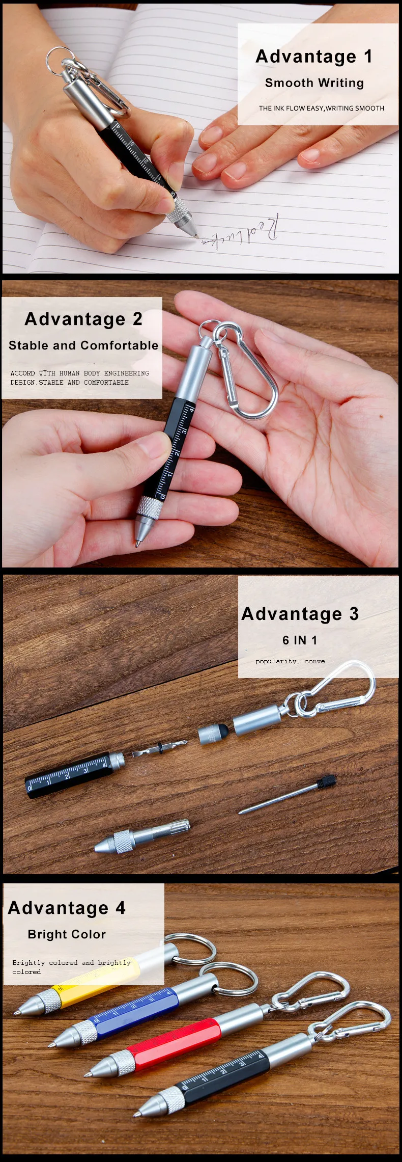 Многофункциональные инструменты 6 в 1, ручки, маленькие шариковые вращающиеся металлические ручки, отвертка, шестигранный, сенсорный экран, карабин, весы, брелок