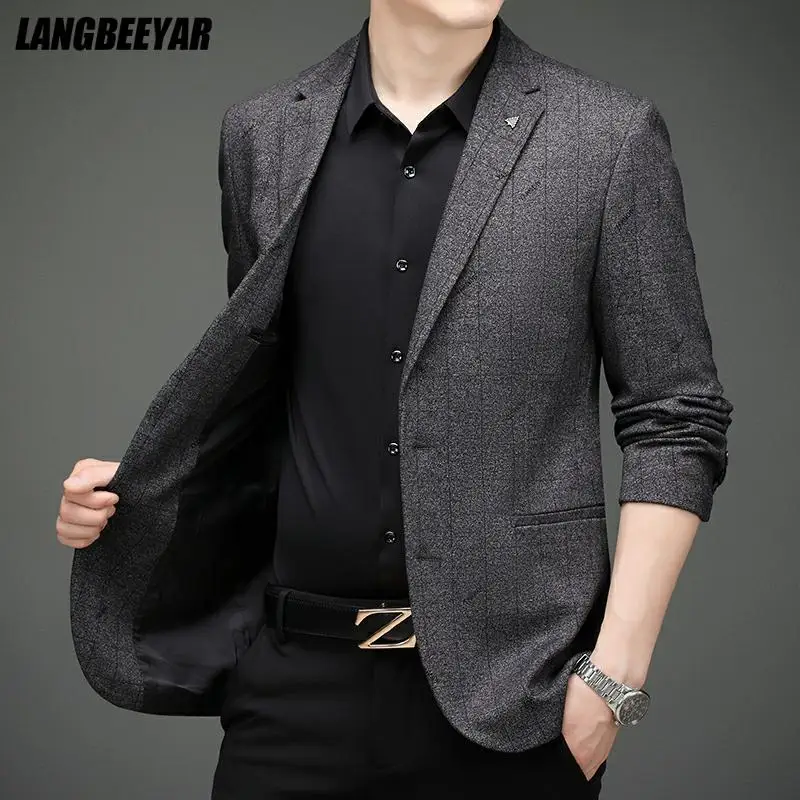 Высококачественный новый дизайнерский брендовый клетчатый Повседневный модный жаккардовый элегантный Блейзер, приталенный стильный трендовый пиджак, мужская одежда