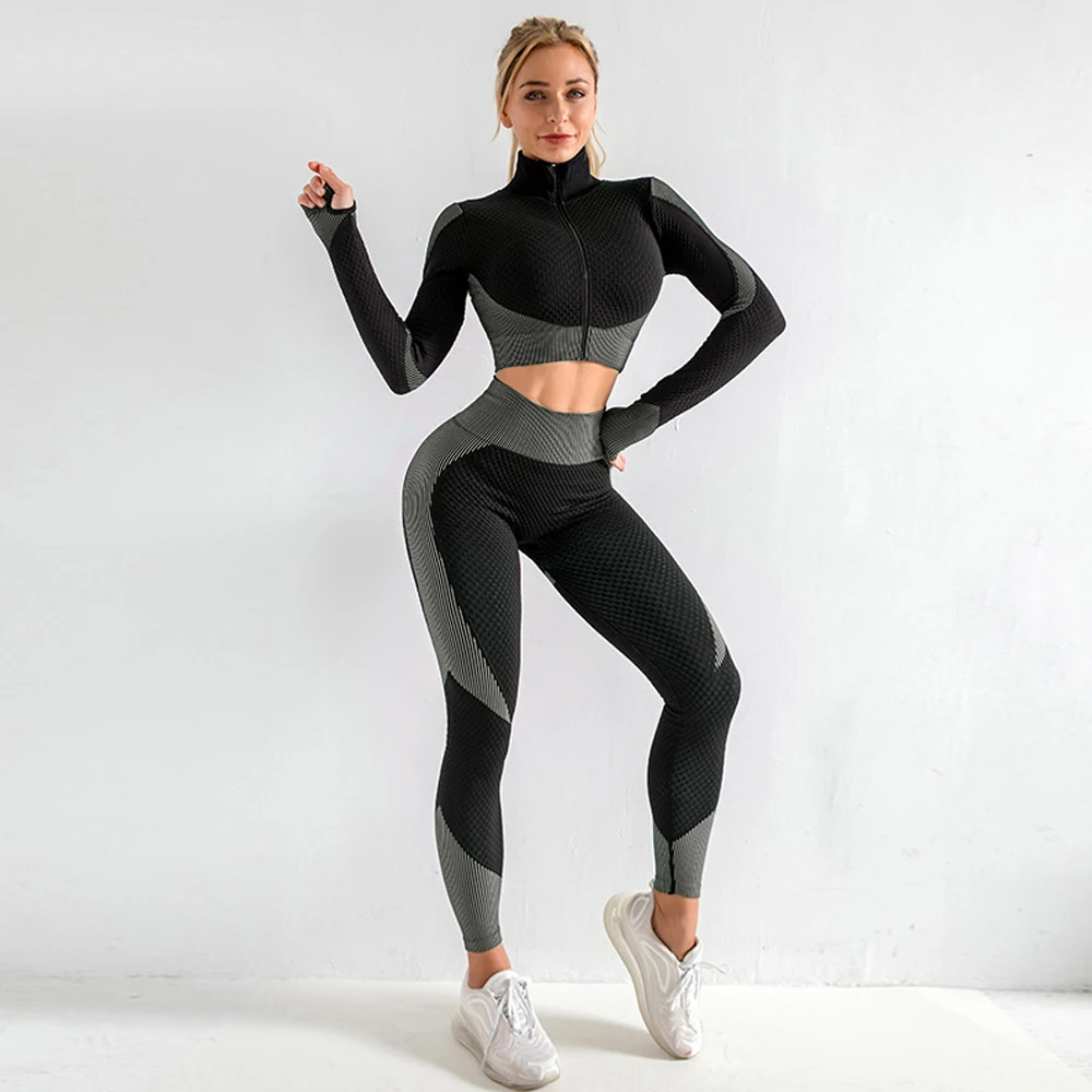 Женский бесшовный костюм для йоги, спортивный костюм на молнии с дл...