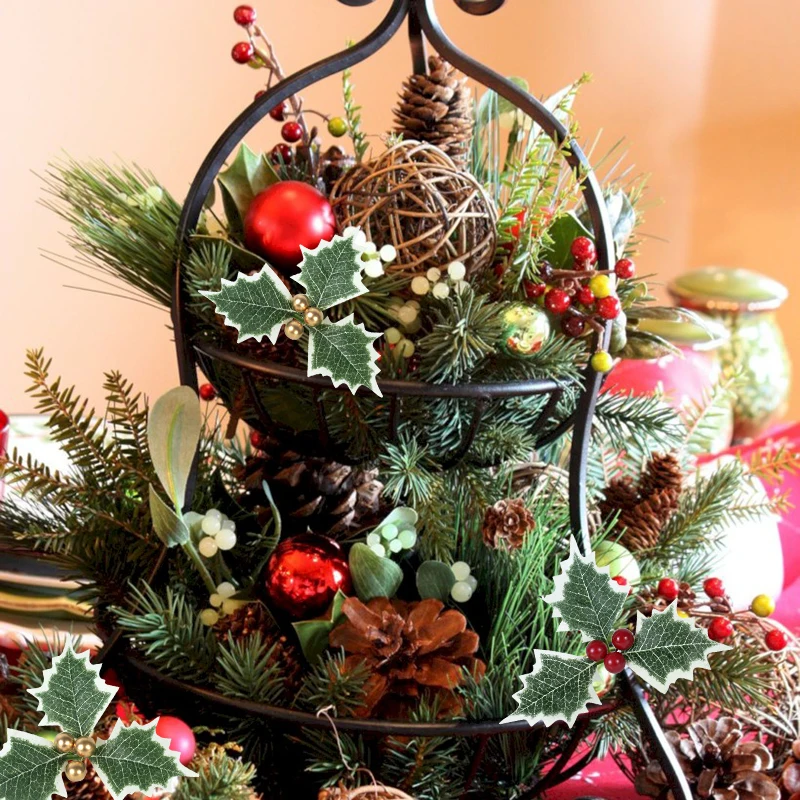 5/10 шт. Рождественские декоративные искусственные листовой Берри красные листья поддельные фрукты завод тычинки самодельный венок для дома для отдыха и вечеринок орнамент