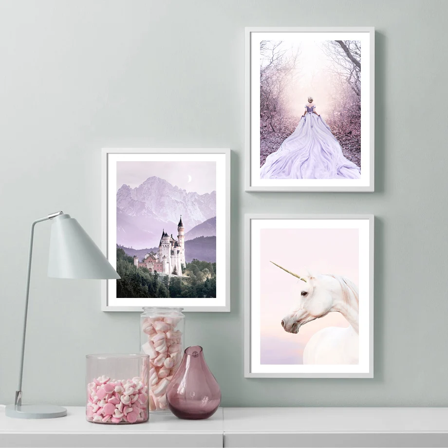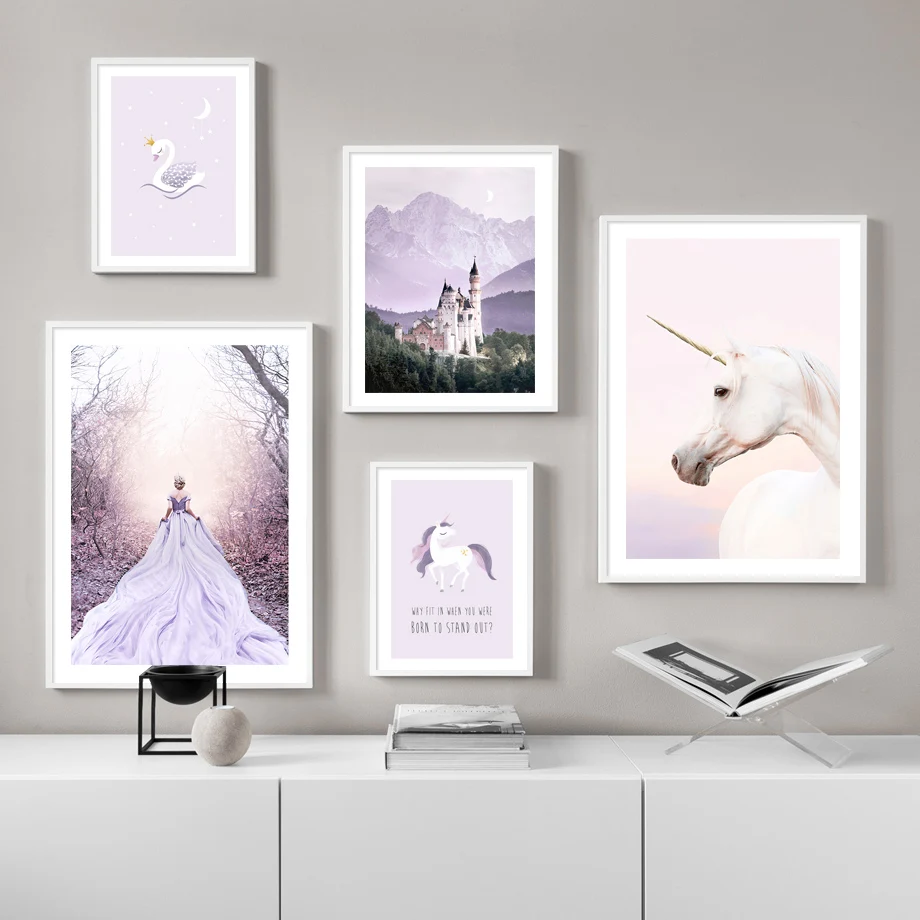 Замок принцесса Единорог Лебедь фиолетовая мечта художественная стена с цитатой Холст Картина скандинавские постеры и принты настенные фотографии девушка декор комнаты