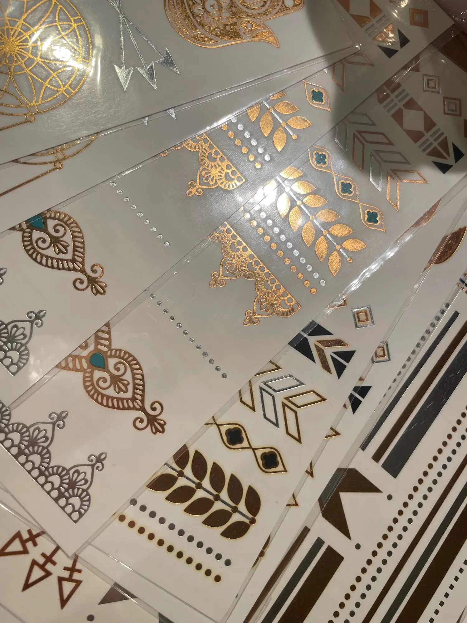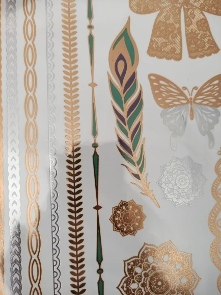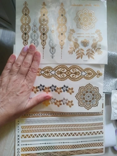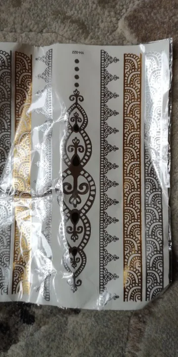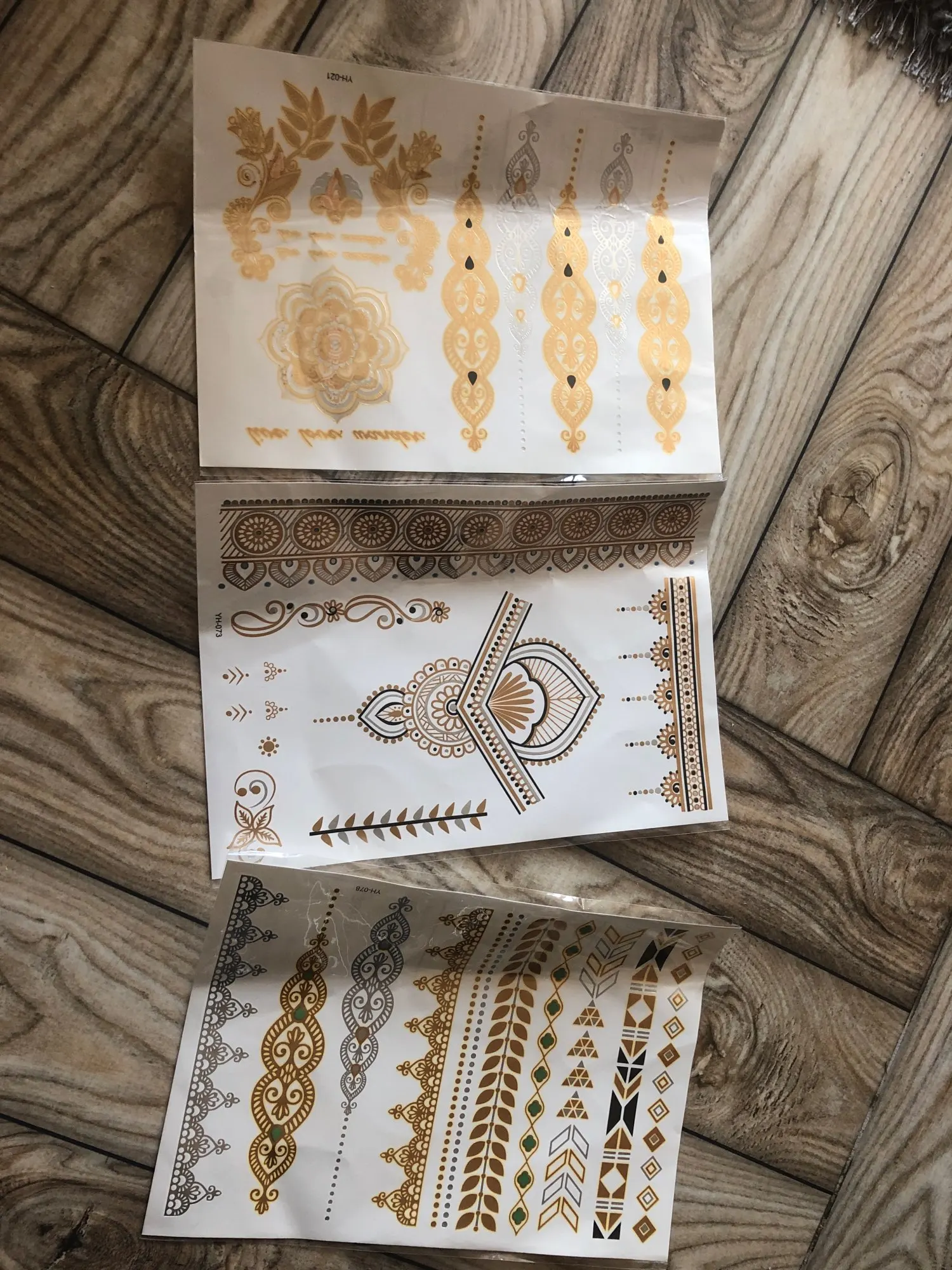 Блестящие металлические водостойкие Временные татуировки, золотые, серебряные, тату, женские серьги, хна, мандала, цветочные кружева, индийские татуировки арабский тату-стикер