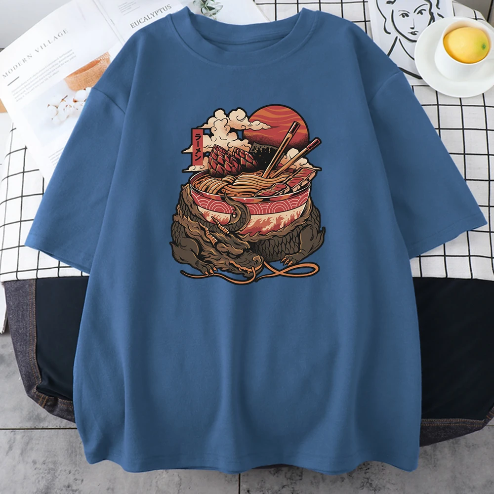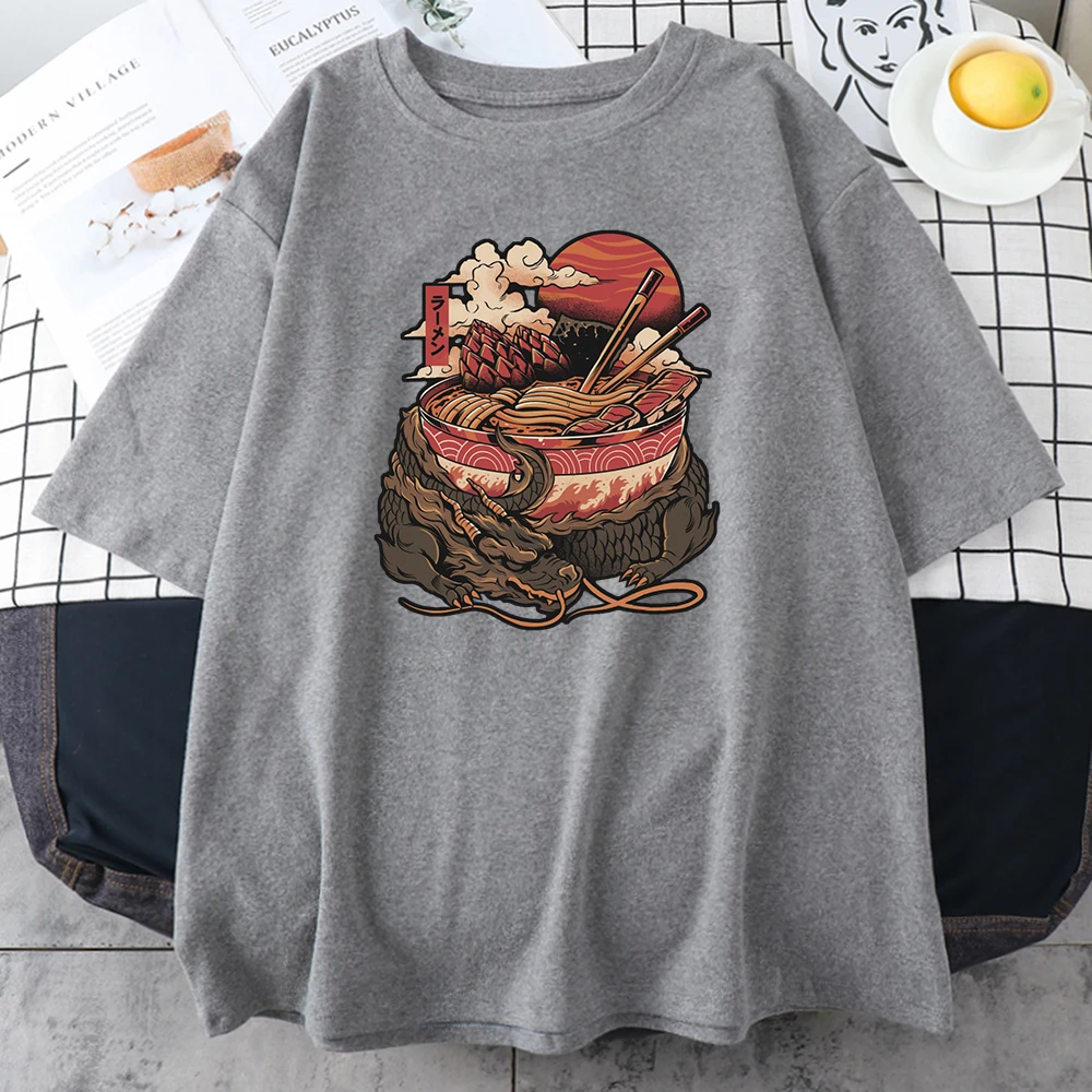 Футболка Ukiyoe женская с принтом рамен, уличная одежда в японском стиле Харадзюку, свободная черная рубашка с круглым вырезом в стиле хип-хоп, на лето