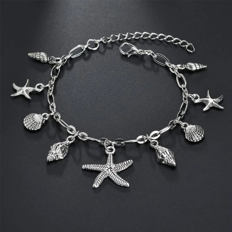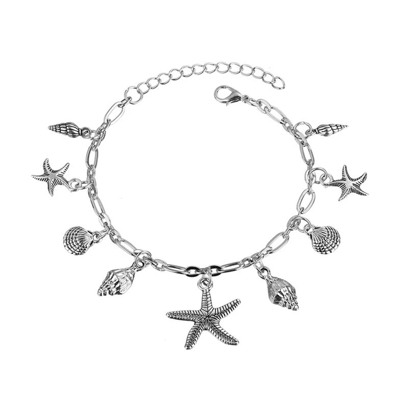 Винтажные браслеты ZHONGVI на ногу для женщин, анклеты с подвесками в виде ракушек и морских звезд, летняя пляжная бижутерия для ног