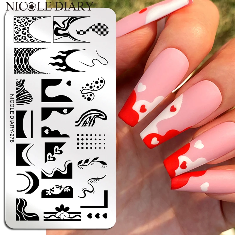 Трафареты NICOLE DIARY для штамповки, пластины с леопардовым принтом и цветами, маникюрные штампы, инструменты для аксессуаров