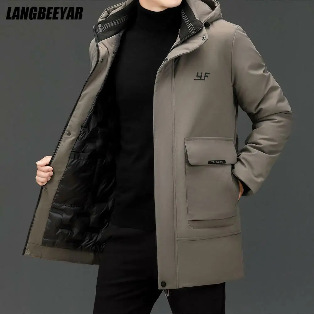 Новая брендовая Повседневная модная Толстая Теплая мужская длинная ...