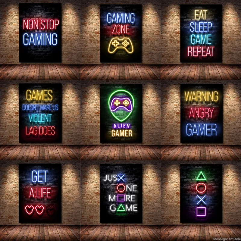 Абстрактная игра неоновый постер настенное Искусство Холст Живопись...
