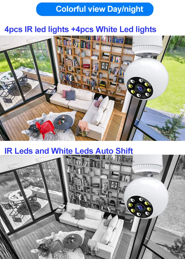 Лампочка E27 Wifi PTZ HD инфракрасная камера ночного видения двусто...