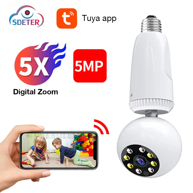Sdeter 3 Мп 5 Мп лампа с камерой Wi-Fi беспроводное 360 видеонаблюдение умный дом Tuya 2 направления разговор 5X зум камера безопасности