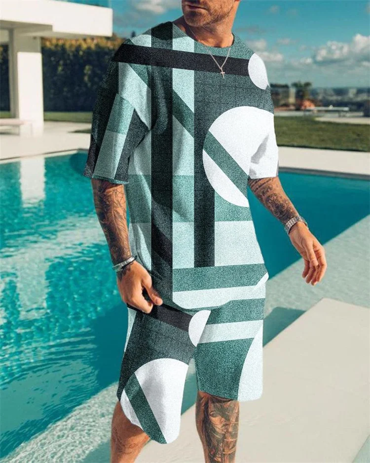 Комплект мужской из футболки и шортов, с 3D-принтом и коротким рукавом