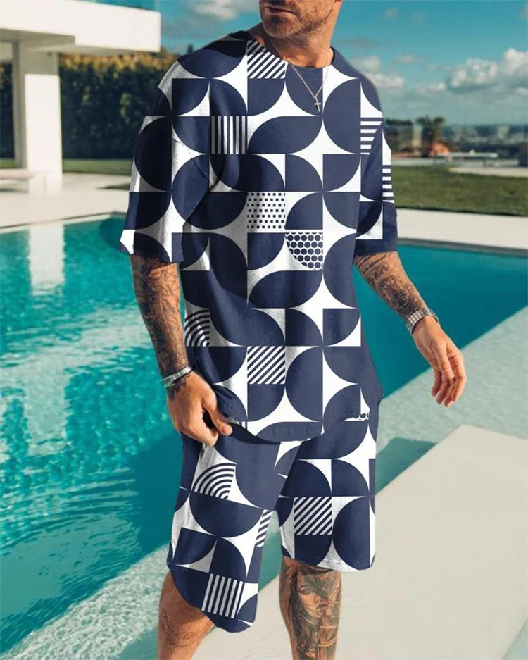Летний мужской комплект с геометрическим рисунком, мужская спортивн...