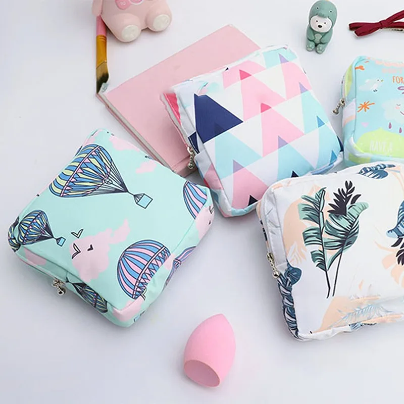Женская портативная гигиеническая сумка для хранения тампонов, хлопковая дорожная сумка для хранения макияжа, литературный кошелек на молнии для мелочей