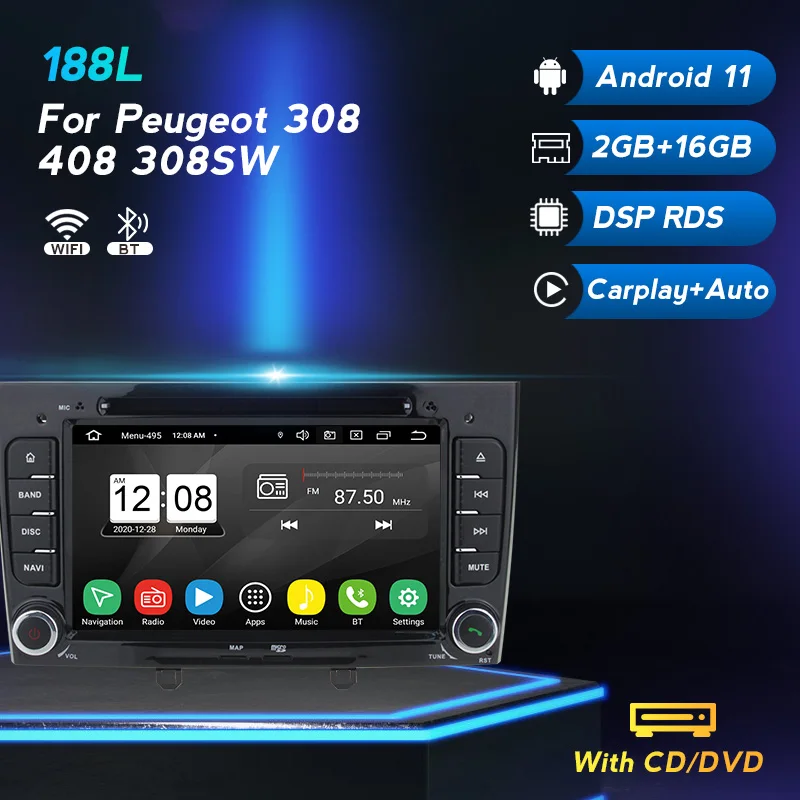 7-дюймовый IPS DSP Android 11 LTE автомобильный DVD-плеер WIFI Bluetooth RDS радио для PEUGEOT PG 308 408 308sw 2007-2010
