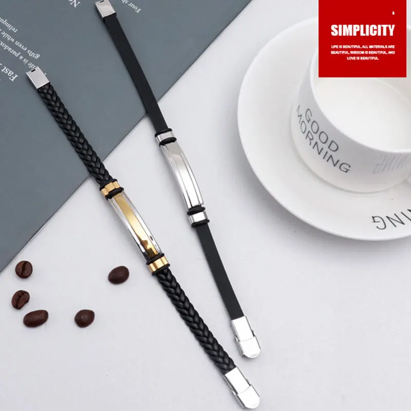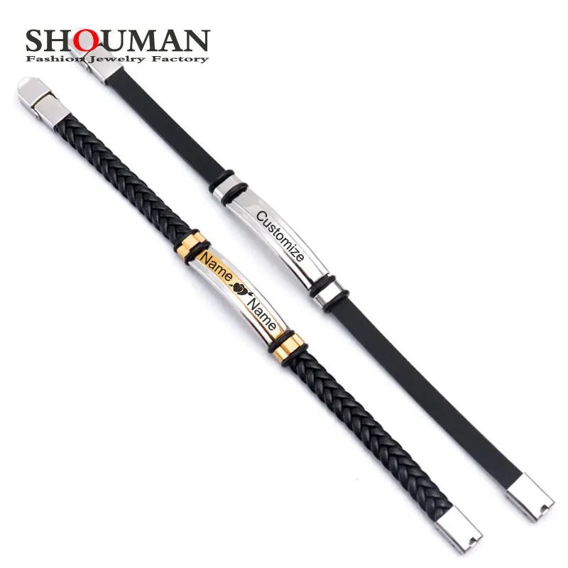 SHOUMAN модный простой индивидуальный тканый кожаный силиконовый Золотой Серебряный браслет мужской из нержавеющей стали с именем даты