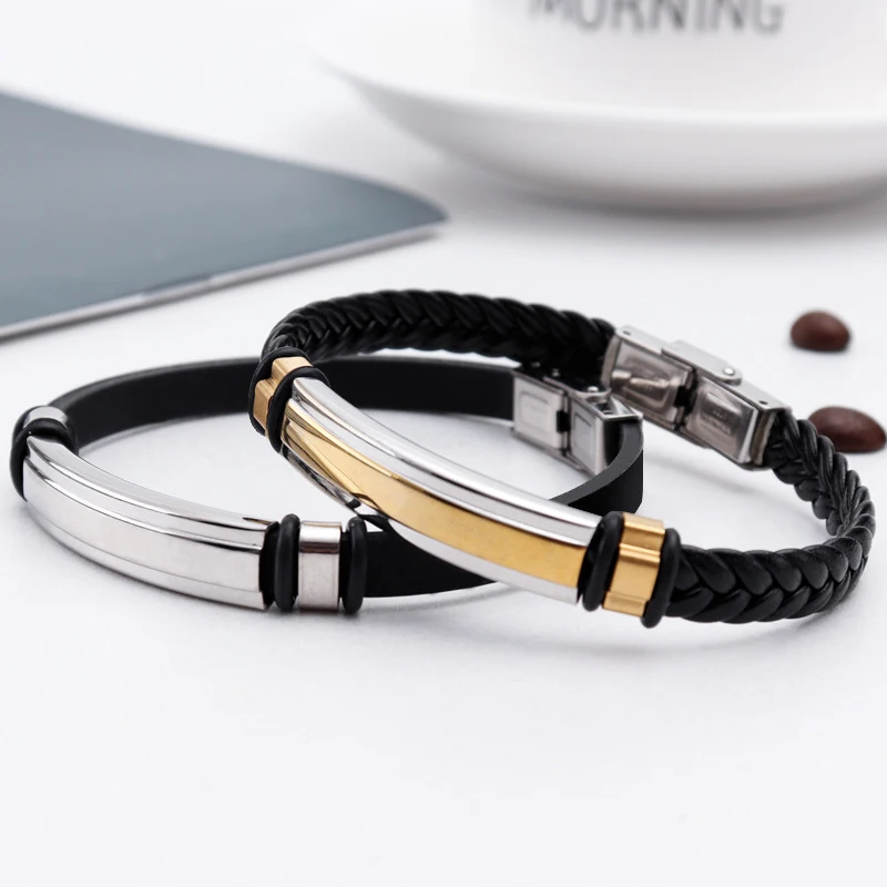 Пустые идентификационные бирки из нержавеющей стали, кожаные брасле...