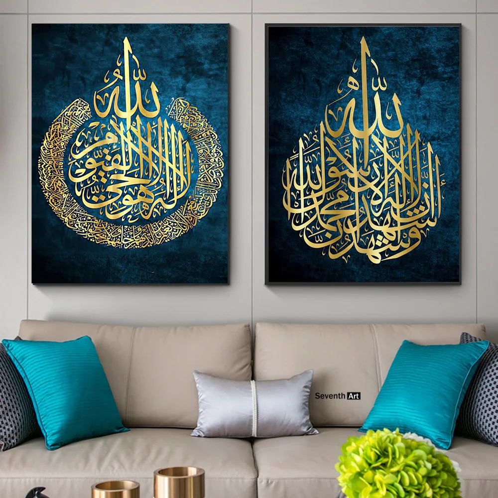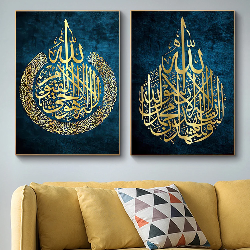 Арабская каллиграфия плакат Ayat ul kursi Исламская настенная Картина на холсте Исламский подарок мусульманский свадебный Декор печать домашний декор