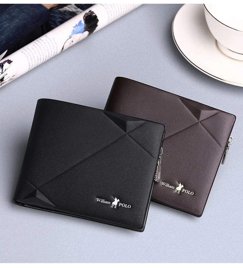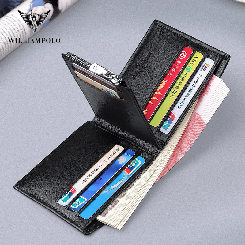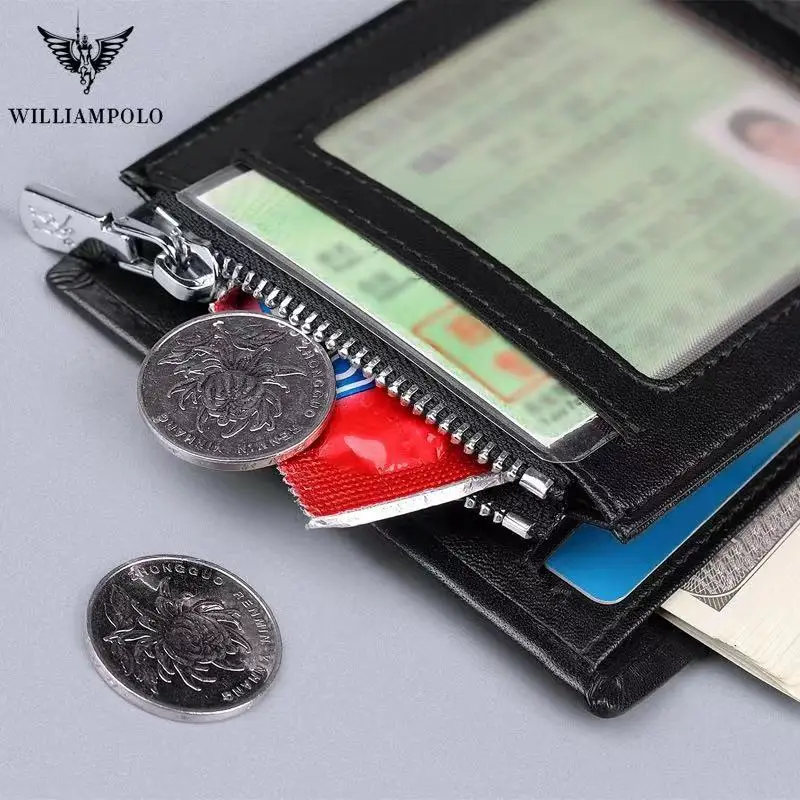 Мужской тонкий кошелек из натуральной кожи WILLIAMPOLO, мини-кошелек, повседневный дизайн, Двойные кошельки, брендовые короткие тонкие кошельки с отделением для карт