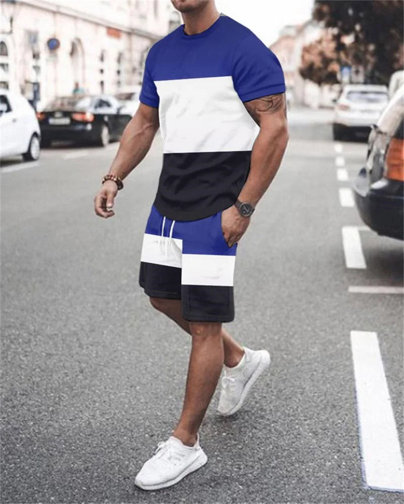Мужская спортивная одежда с 3D принтом шорты с коротким рукавом кос...