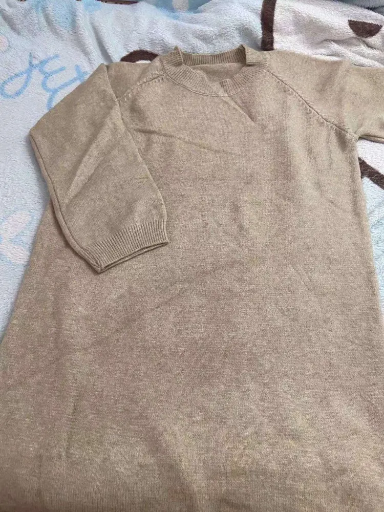 Шерстяное свободное платье цвета хаки, элегантное вязаное облегающе...