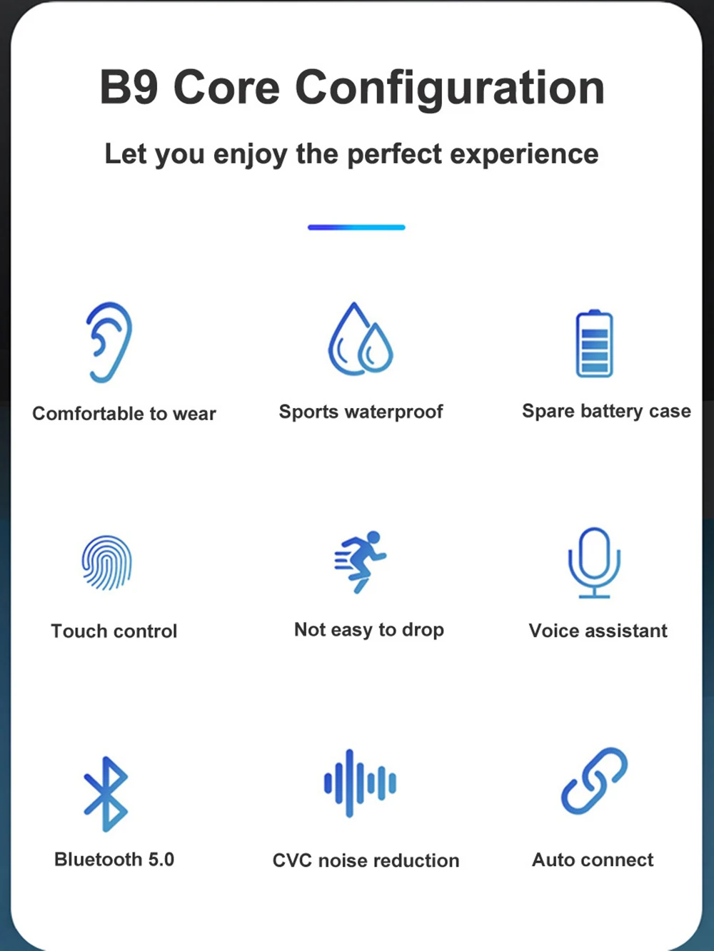 Беспроводные наушники Bluetooth 5,0 B9 TWS внутриканальные 8D HIFI ...