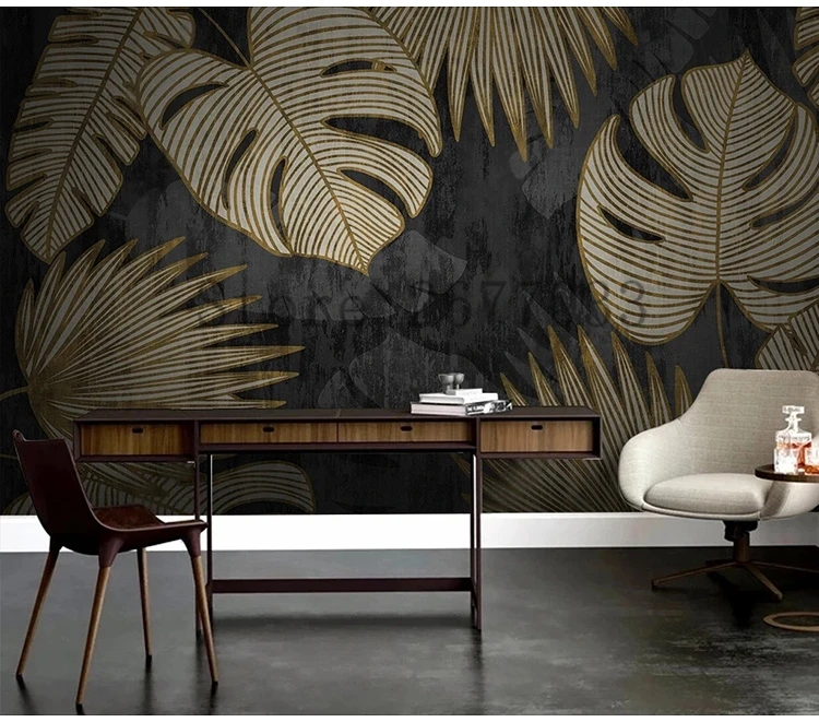 Винтажные обои на заказ, настенные 3D обои с рисунком черных растений, листьев, для гостиной, ТВ, дивана, домашний декор