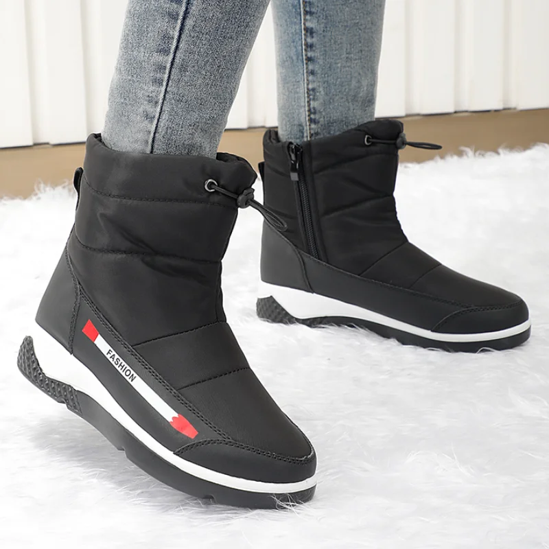 Ботильоны женские зимние повседневные теплые ботинки без шнуровки на танкетке Лоскутные эластичные меховые зимние сапоги женские модные водонепроницаемые сапоги Mujer