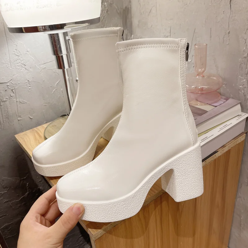 Женские ботинки челси на высоком каблуке, зимние модные повседневные теплые ботинки из искусственной кожи на высоком массивном каблуке с молнией, 2021