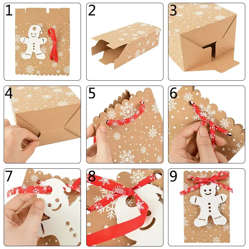 4 шт.лот Рождественская коробка из крафтовой бумаги для конфет пече...
