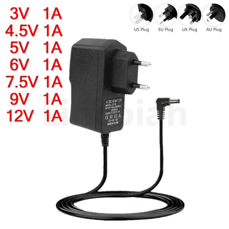 Поворот на 90 , 3 в, 4,5 в, 5 В, 6 в, 7,5 в, 9 В, 12 В, 1 А, мА, совместимый адаптер питания мА, зарядное устройство, штекер переменного тока, постоянного тока, под прямым углом 90 градусов
