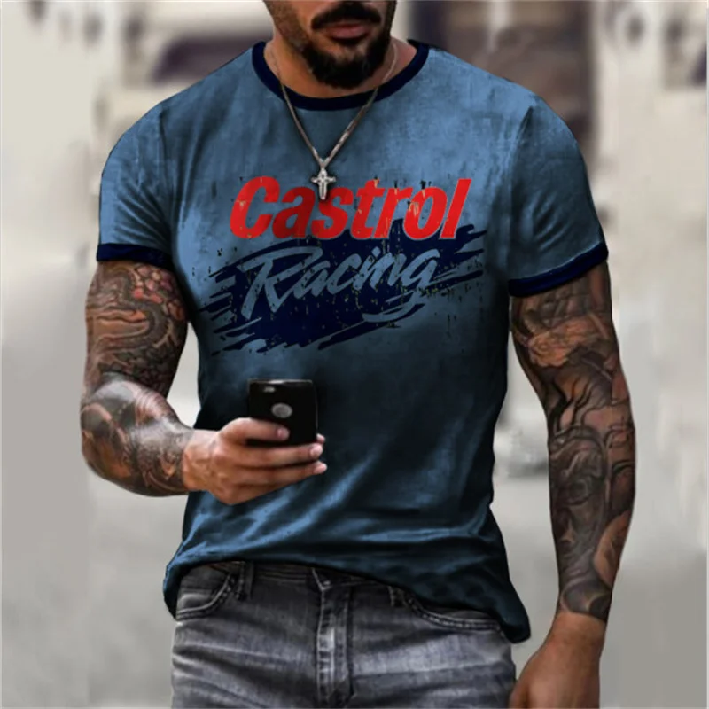 Футболка мужская оверсайз с 3D принтом, модная тенниска с круглым в...