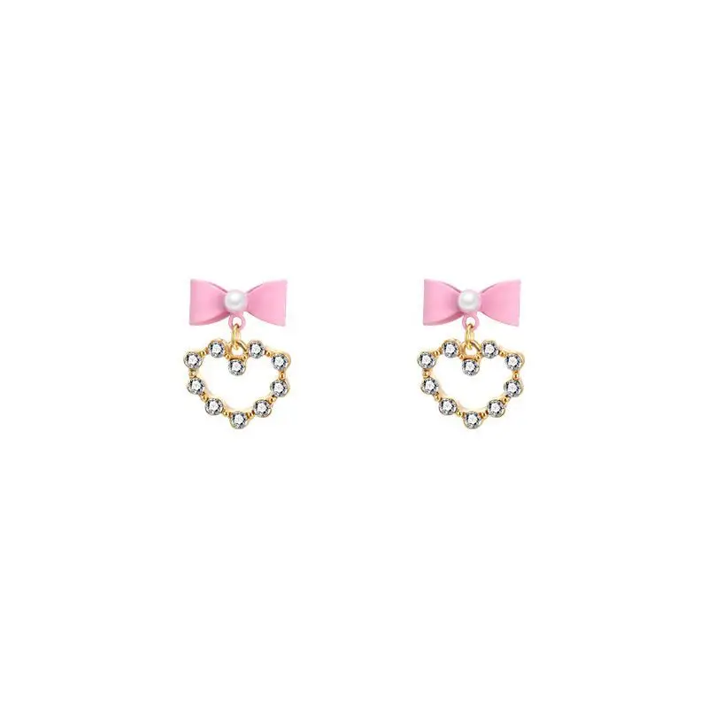 2021 простые серьги Стразы с жемчугом и бантом в форме сердца, женс...