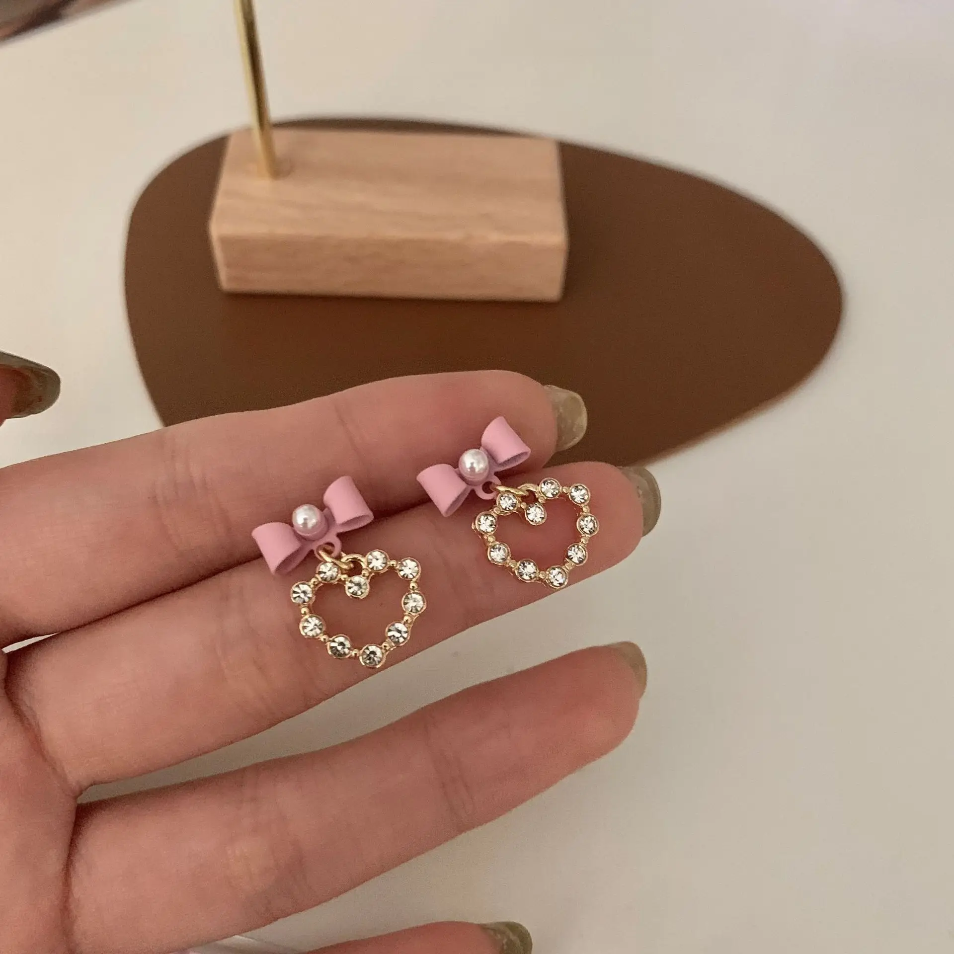 S925 Серебряные серьги Стразы ЛЮБОВЬ сердце лук висячие серьги 2021 новые модные темпераментные серьги-клипсы для женщин девушек ювелирные изделия