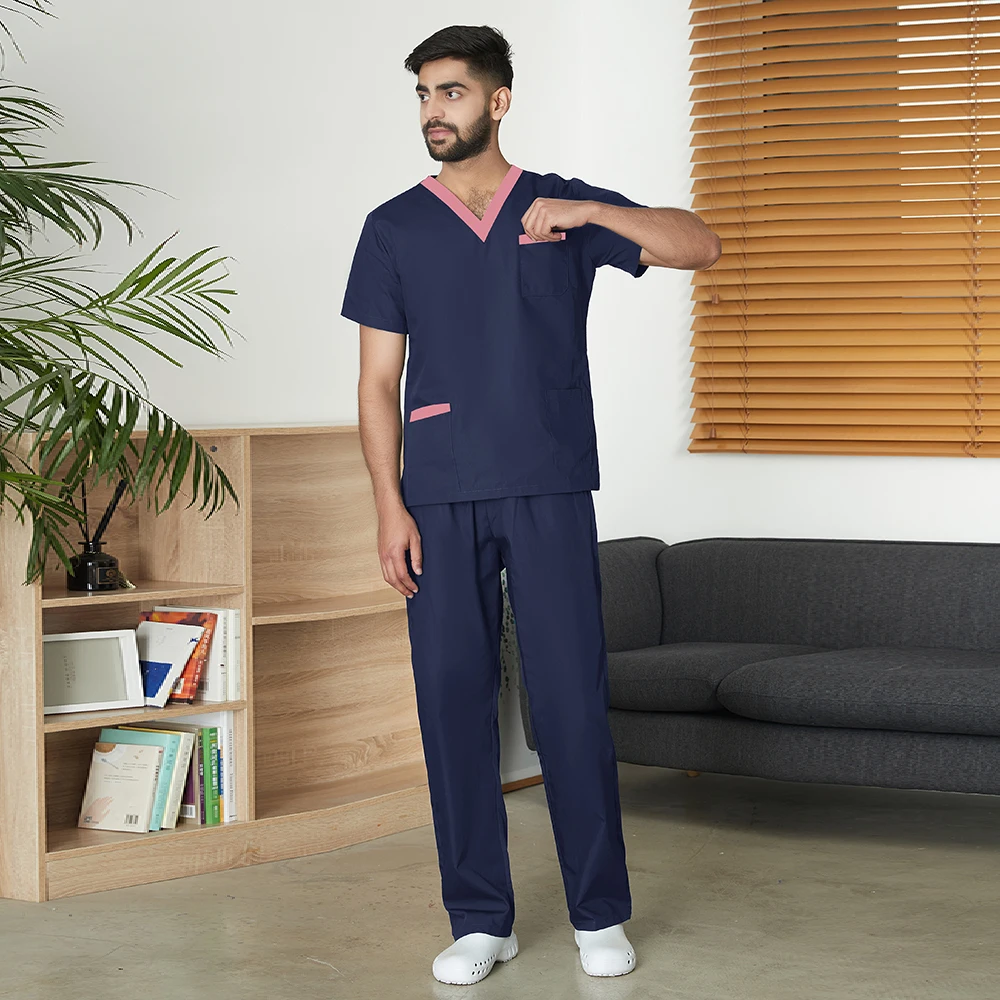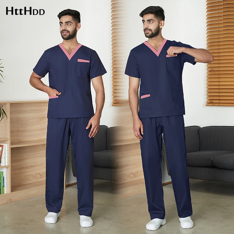 Мужская медицинская униформа, скрабы, одежда оптом, многофункциональные клинические медицинские комбинезоны для ухода за ребенком, костюм с V-образным вырезом и коротким рукавом