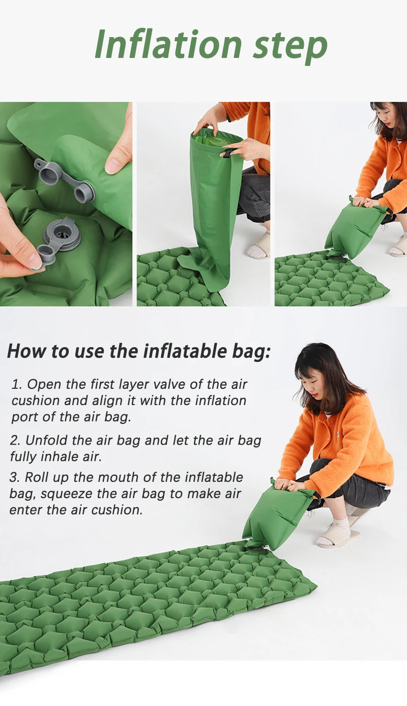 3. Закатайте рот надувной сумки, выдавите воздушный мешок, чтобы воздух попадал в воздушную подушку.