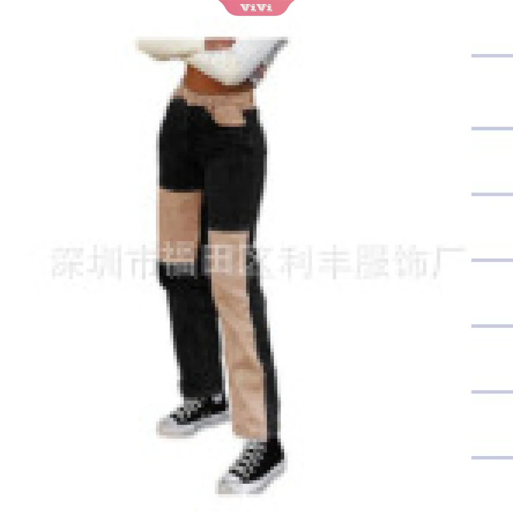 Женские прямые брюки в стиле пэчворк с высокой талией, уличные джинсы, брюки, пикантные двухцветные брюки контрастной строчки