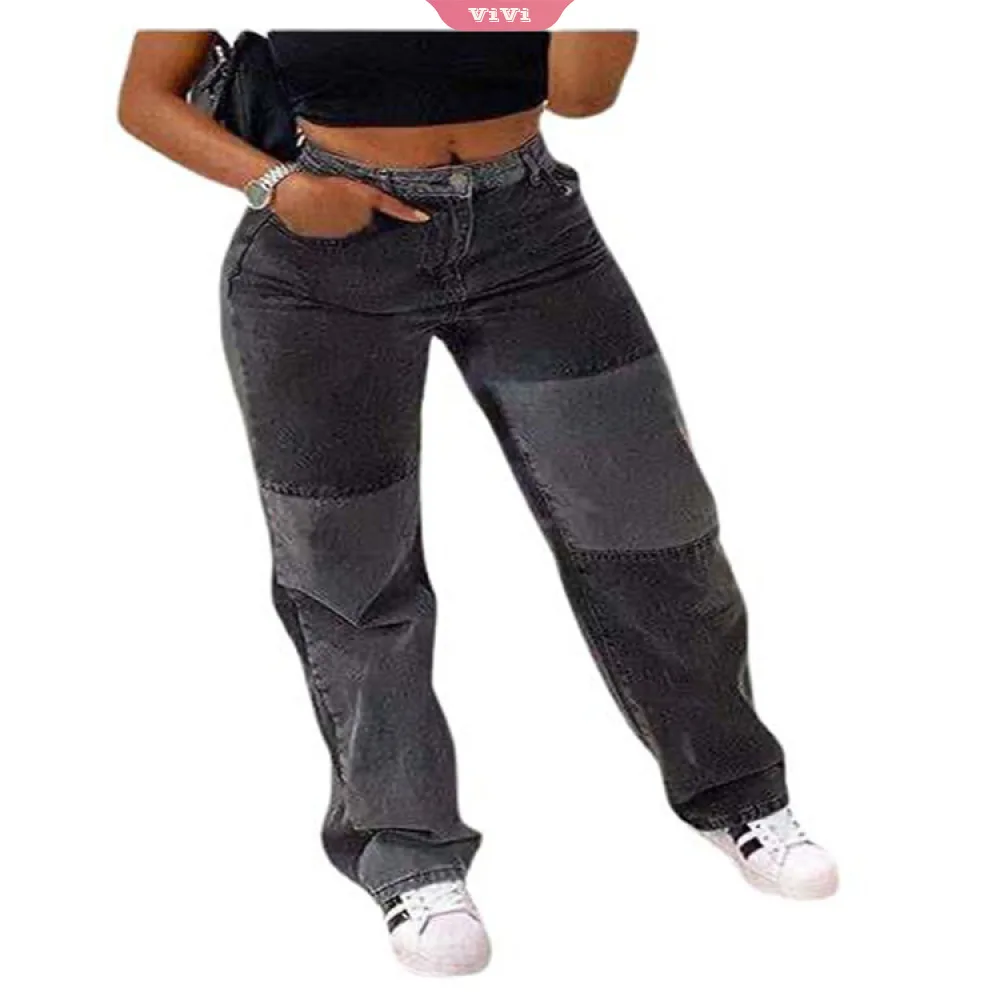 Джинсы женские прямые в стиле пэчворк, мешковатые винтажные джинсы ...