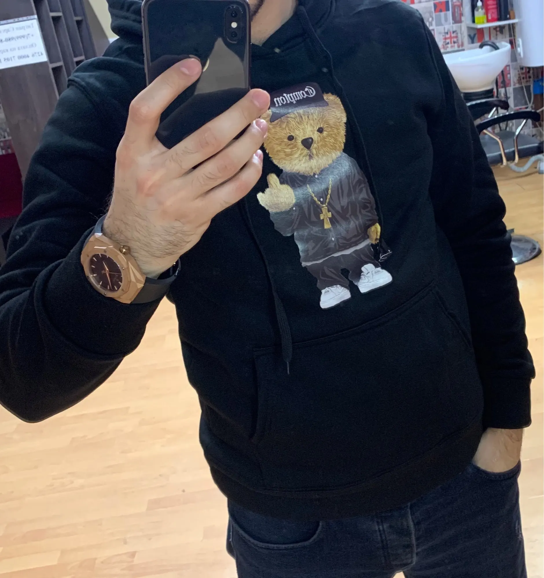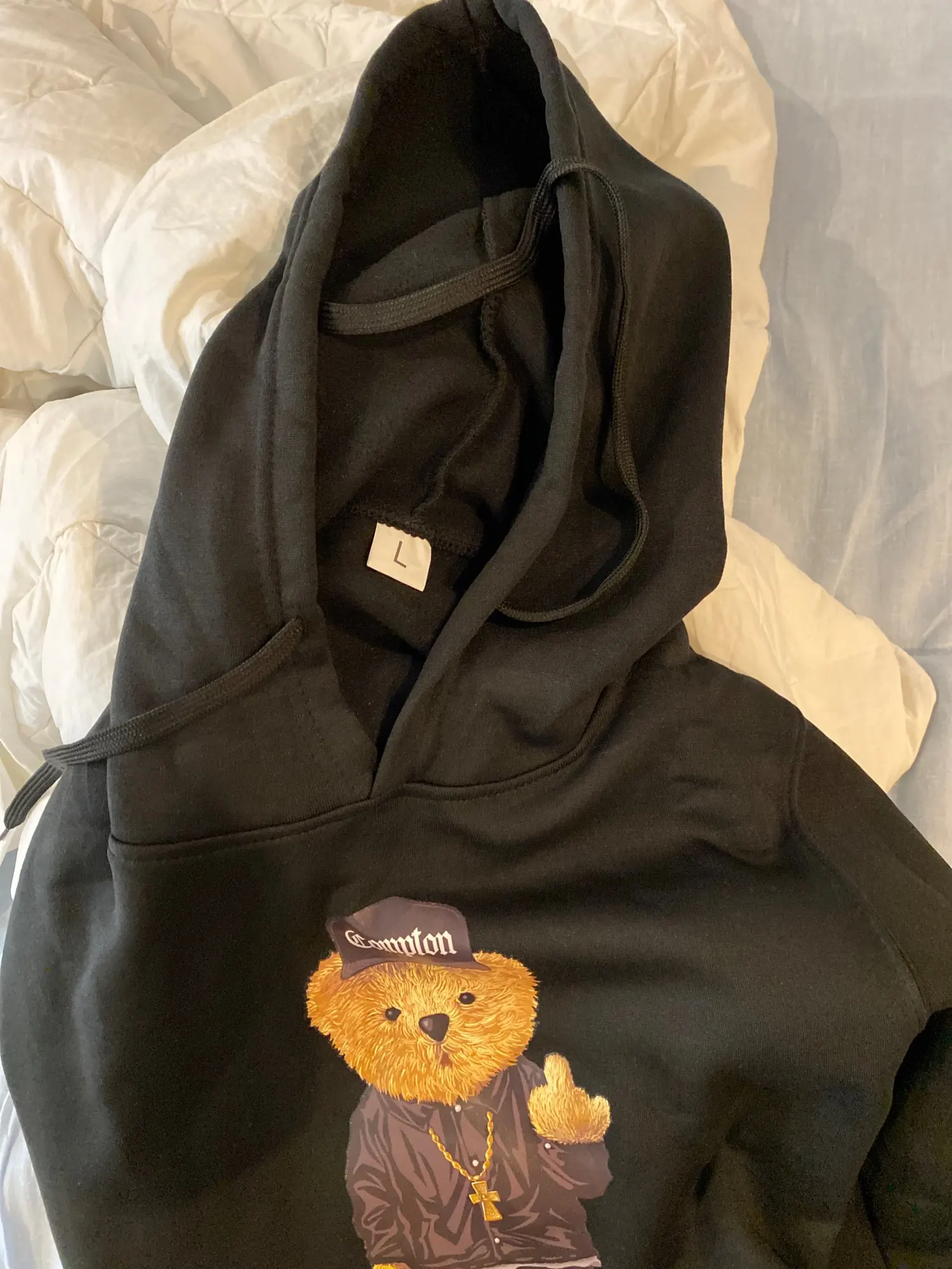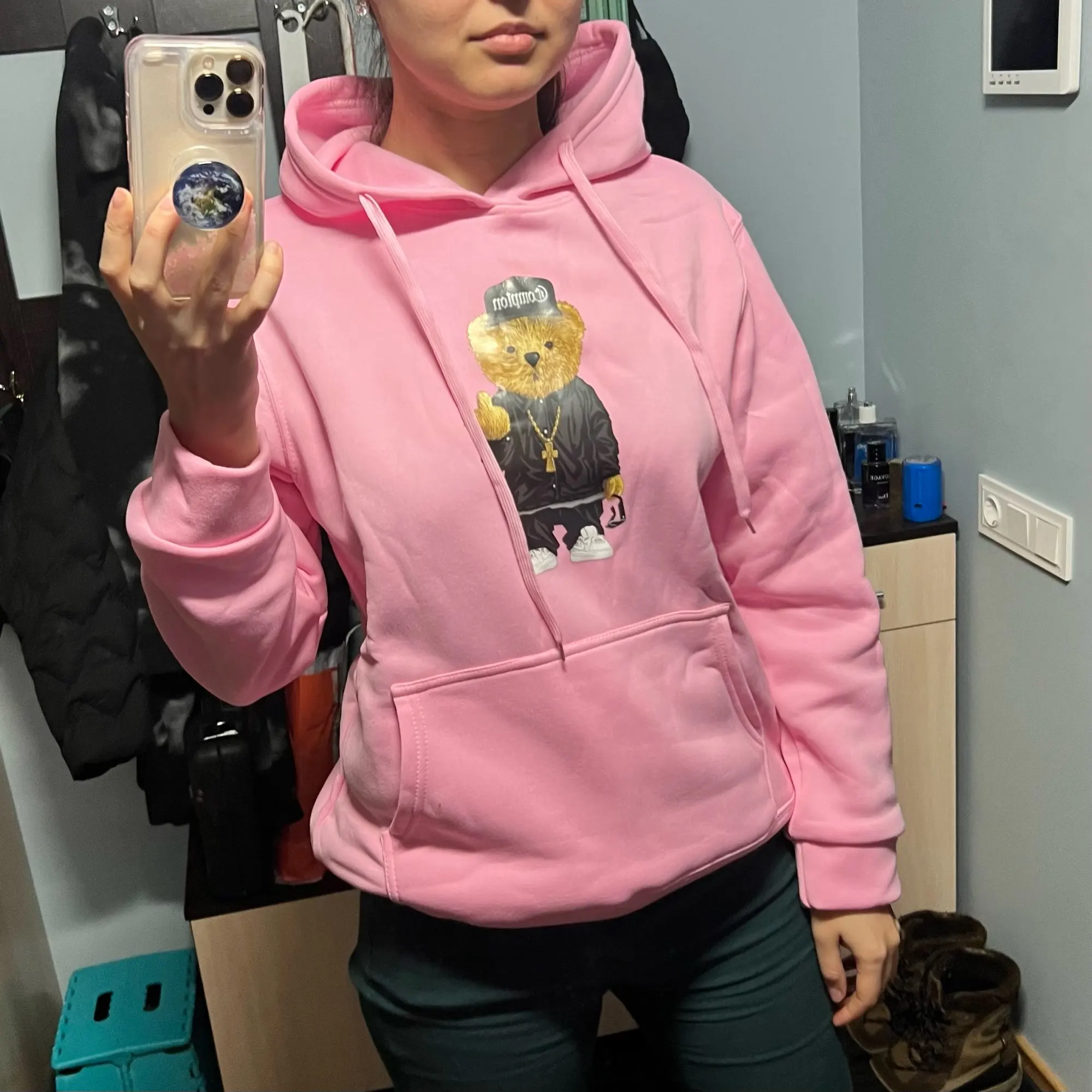 наклейка (медведь ) хорошая но верхний слой толстовки гольная синтетика неприятная