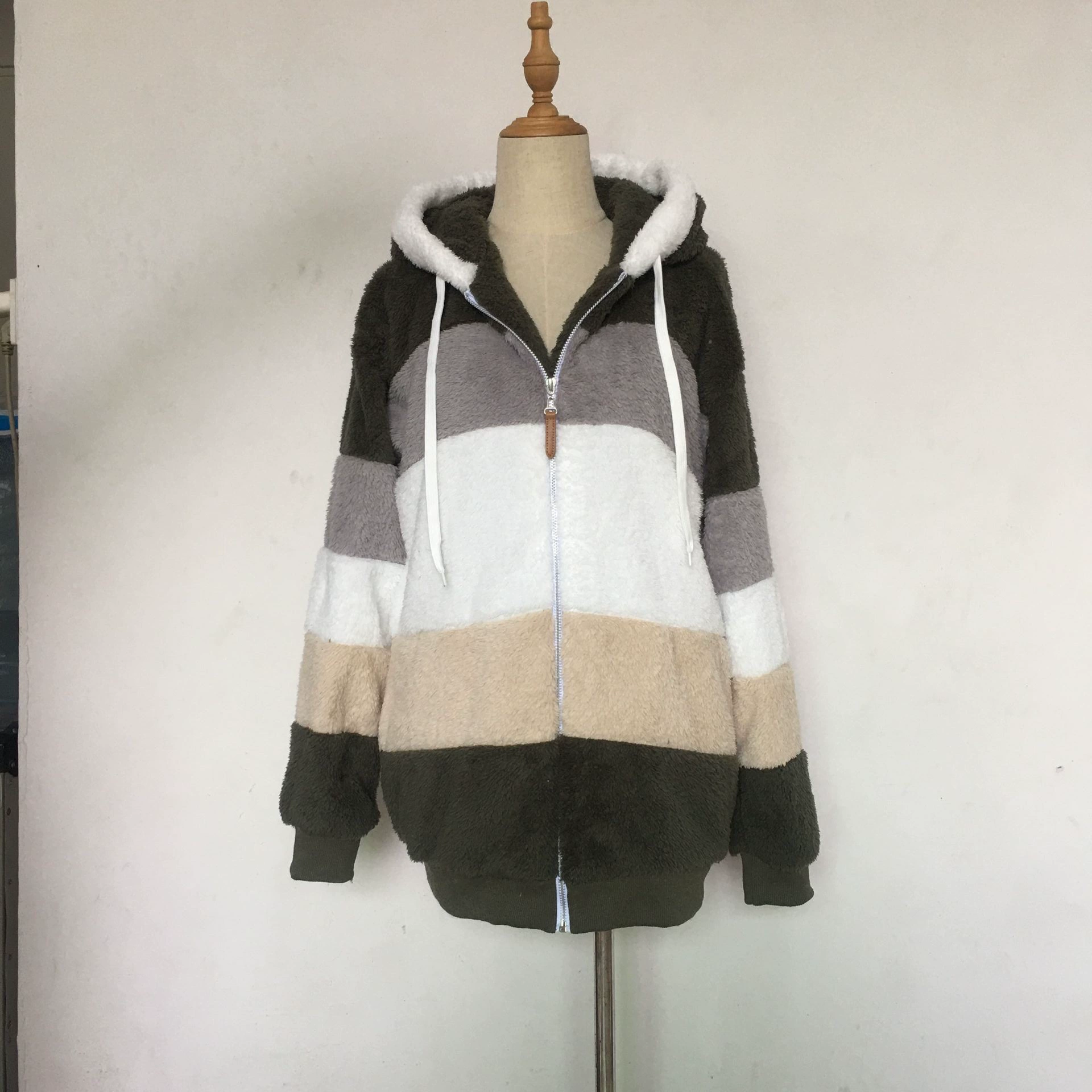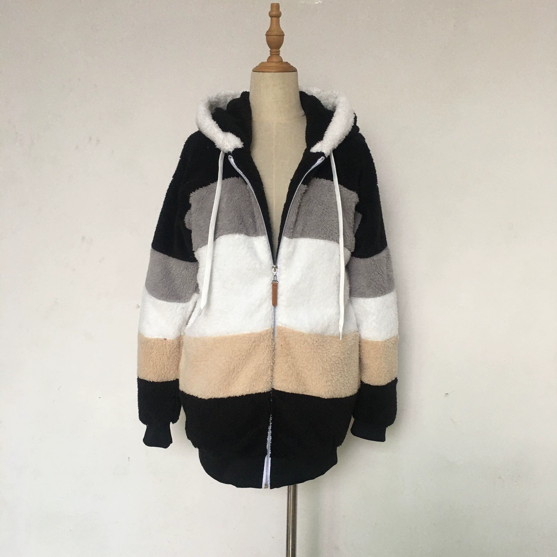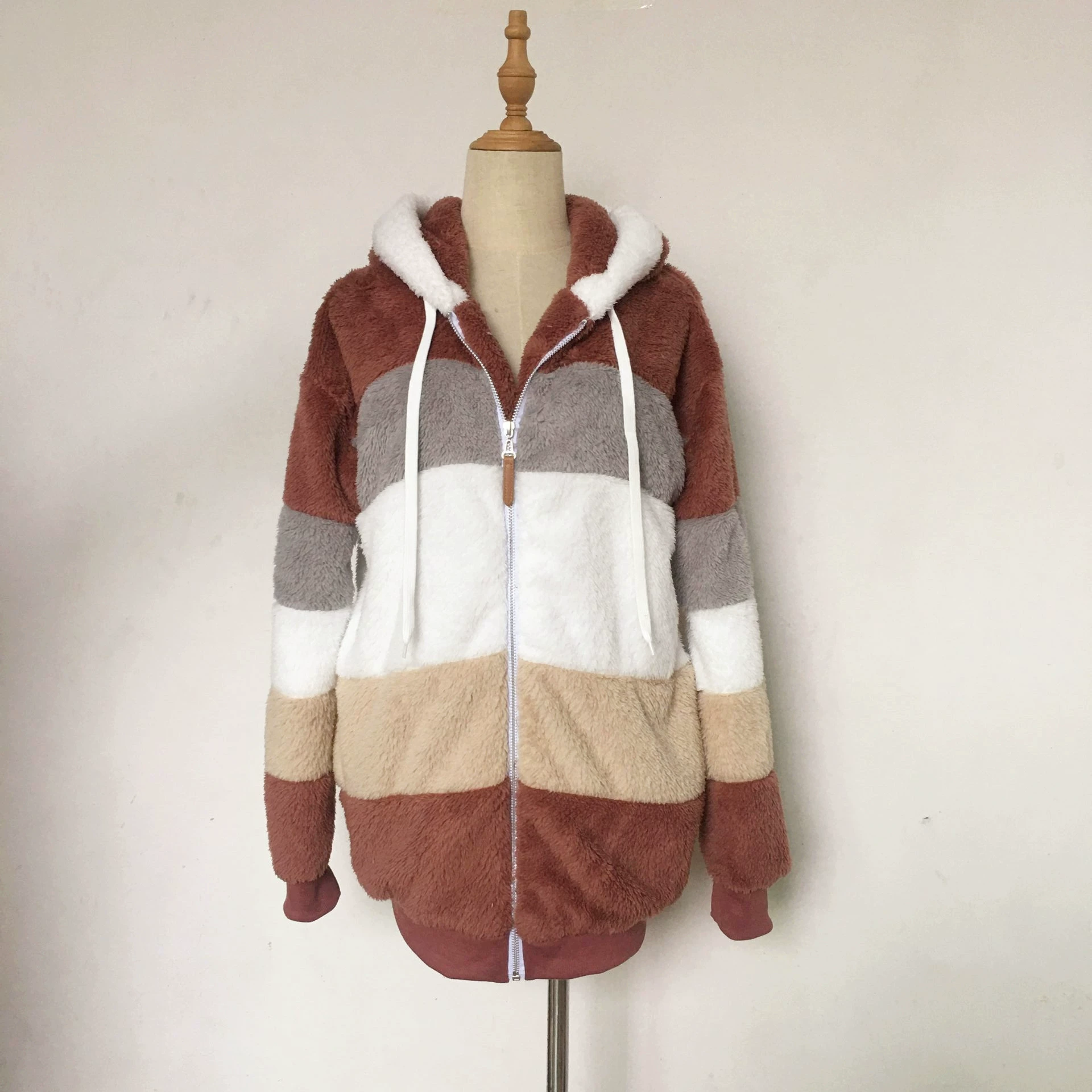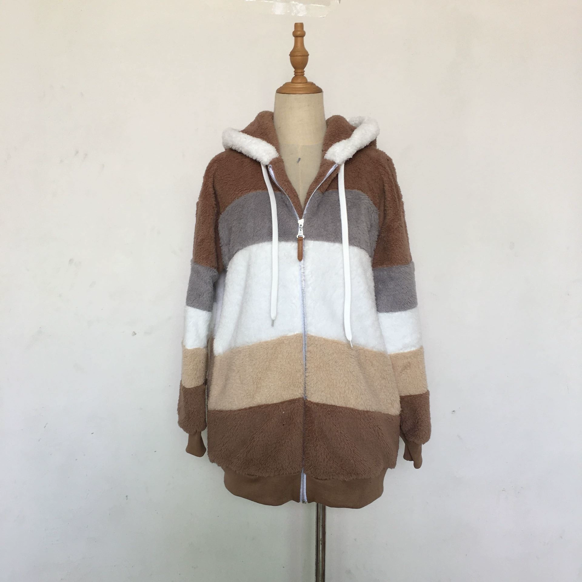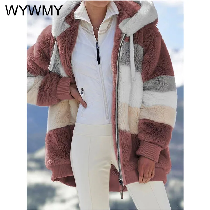 WYWMY зимняя куртка с капюшоном, Женское пальто, модная свободная плюшевая теплая Повседневная многоцветная куртка на молнии, пальто и куртки, женская верхняя одежда