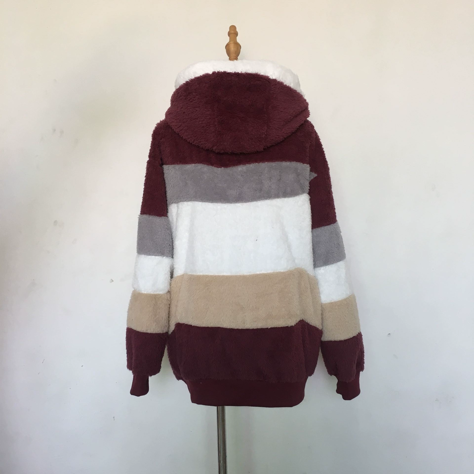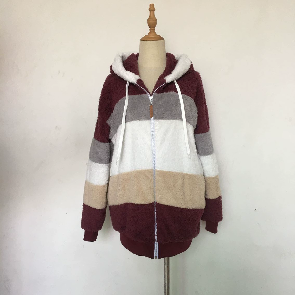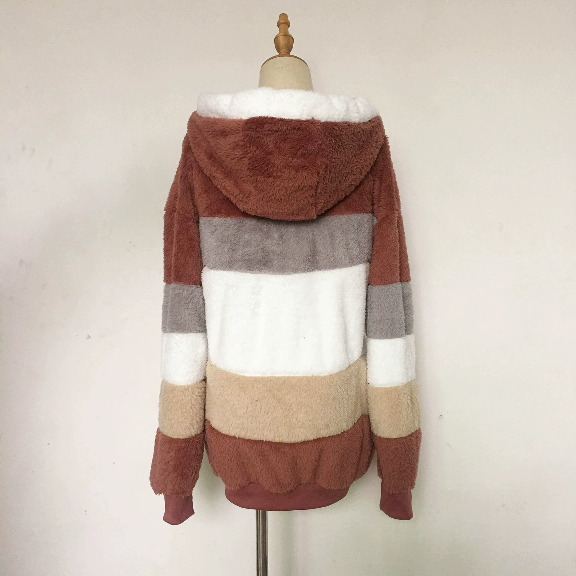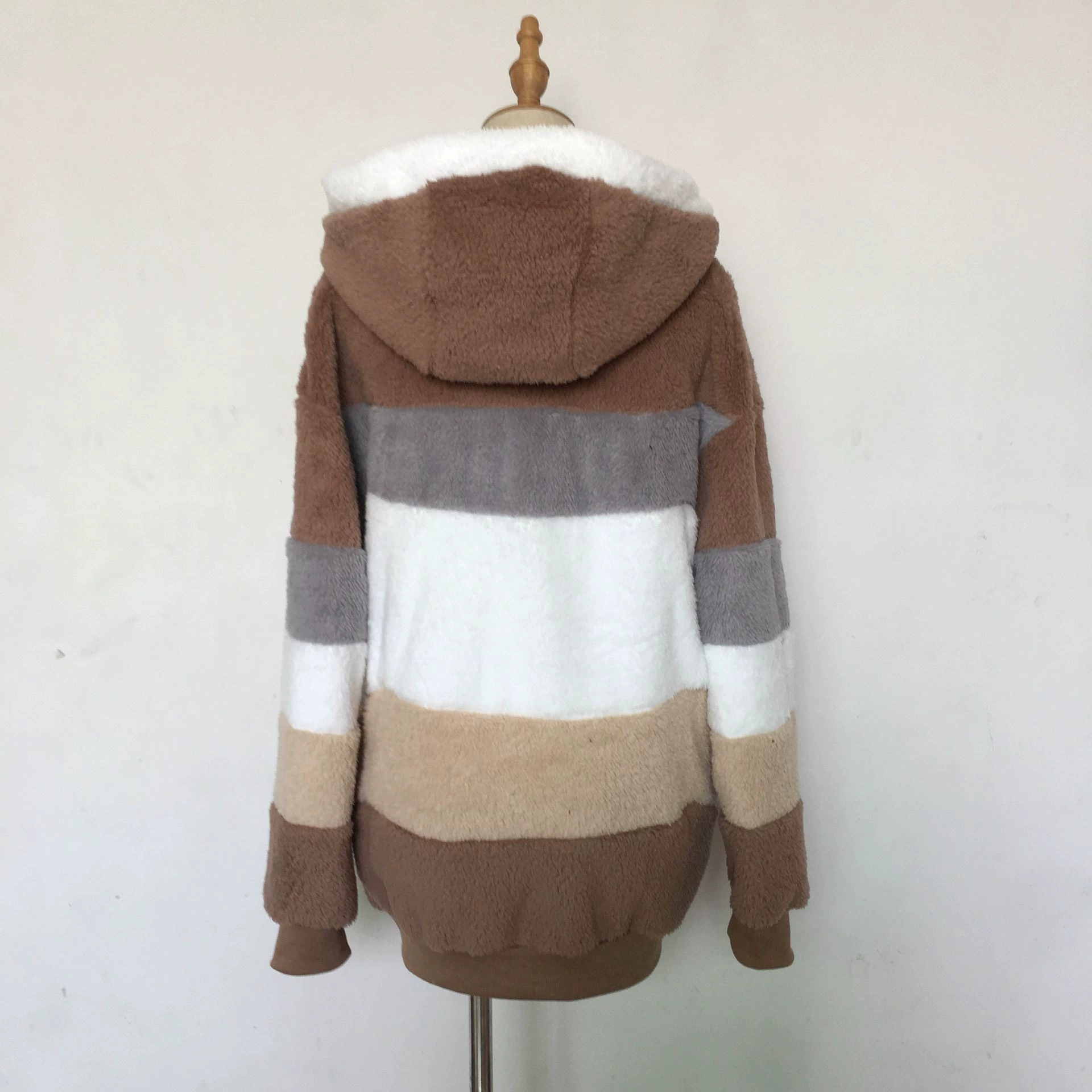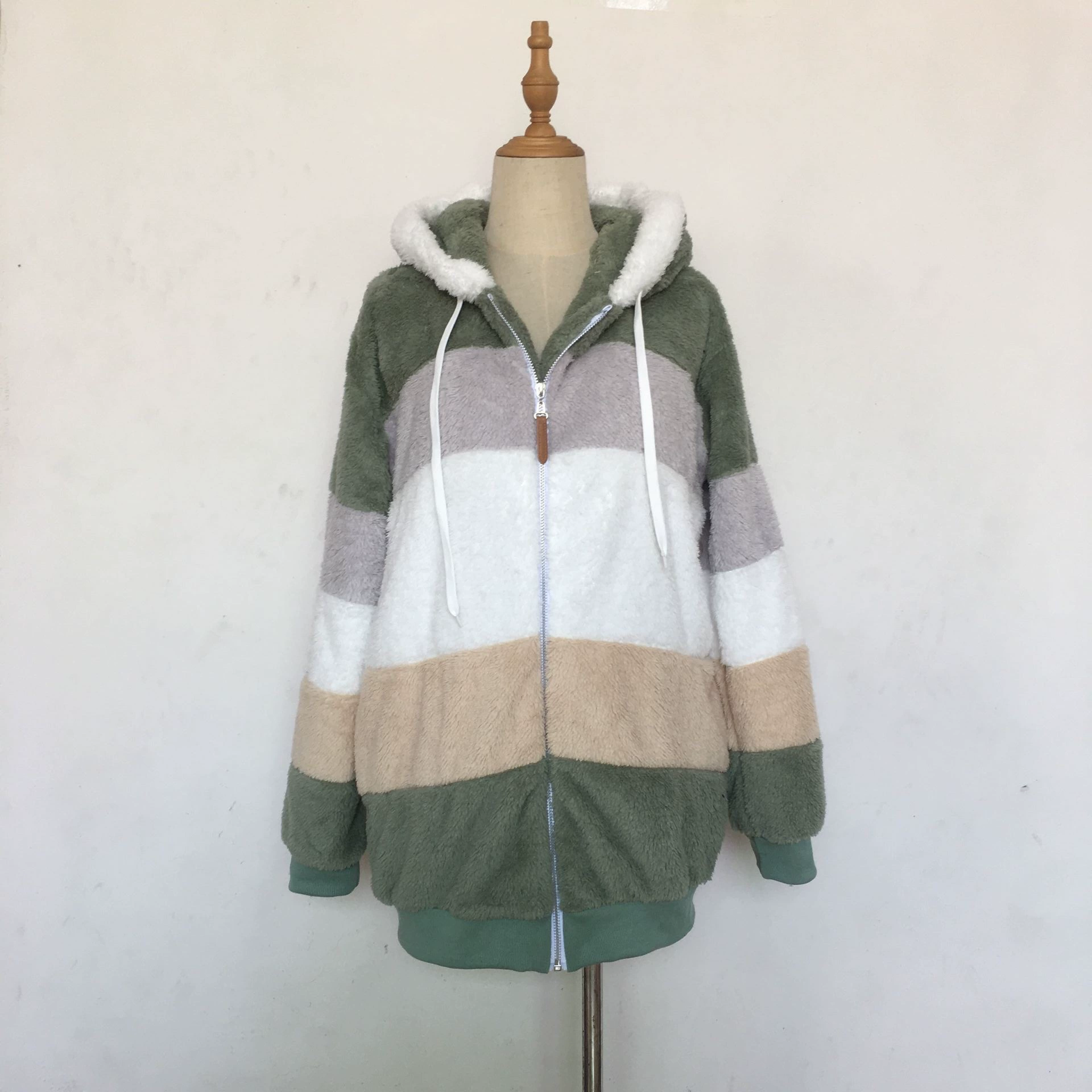 WYWMY зимняя куртка с капюшоном, Женское пальто, модная свободная плюшевая теплая Повседневная многоцветная куртка на молнии, пальто и куртки, женская верхняя одежда