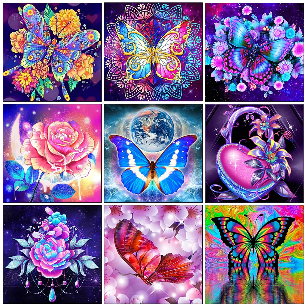 5D алмазная живопись сделай сам, Бабочка, цветок, искусство, картина, алмазная вышивка, вышивка крестиком, стразы, мозаичное украшение стены Gift