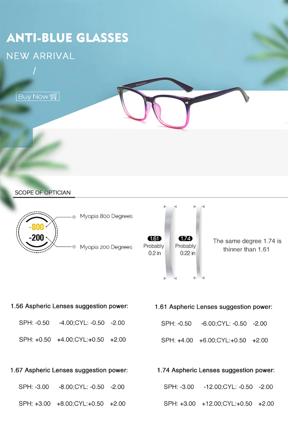 Женский анти-синий лучевой светильник, блокирующие очки UV400 по рецепту, оптические очки, ретро мужские очки для дальнозоркости, очки для чтения 1,56